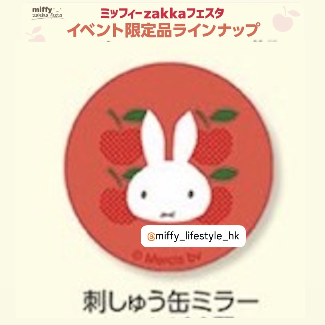 2026 Zakka miffy 展覽限定 " miffy & Apple 刺繡圖案鏡 "